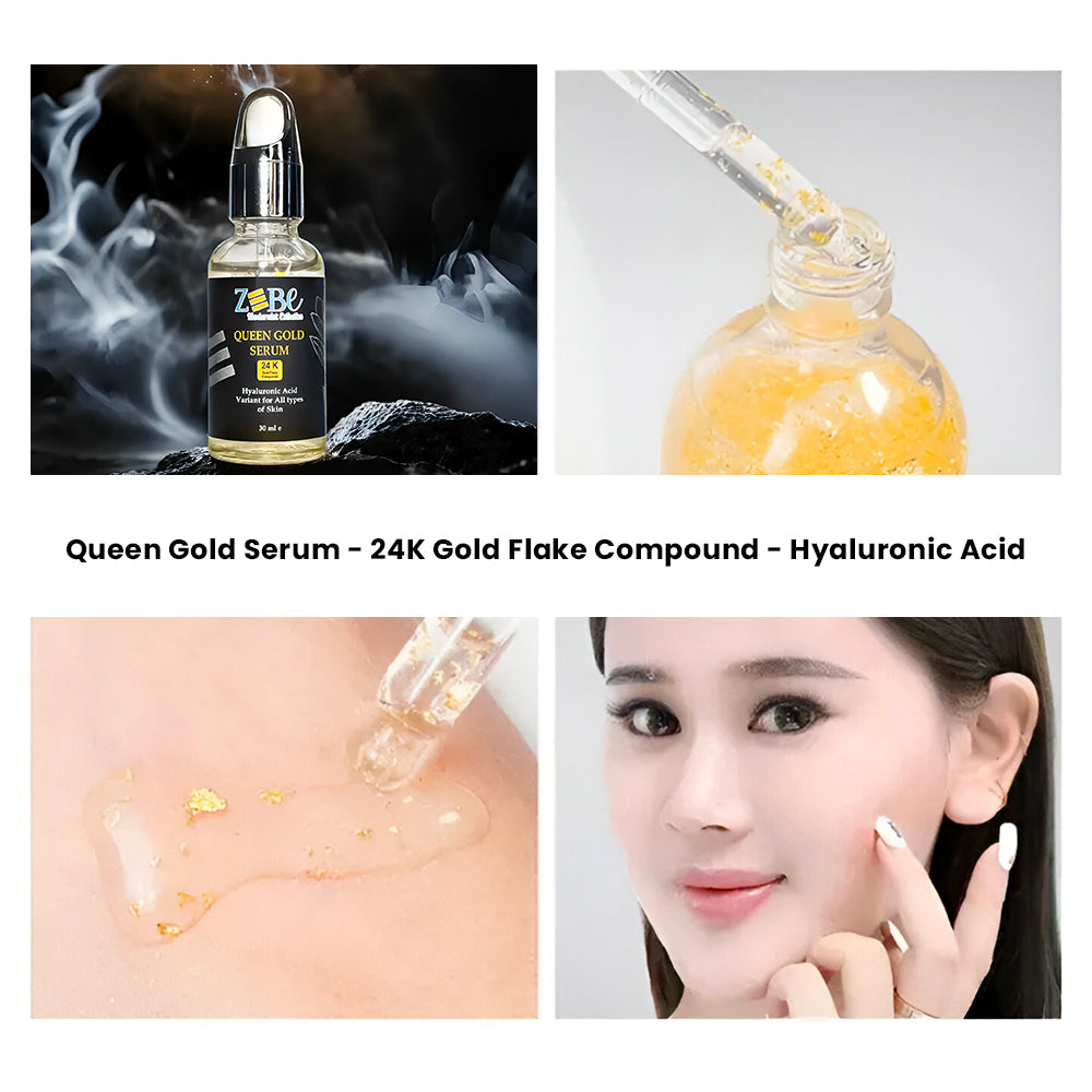Experience luxurious skincare with Queen Gold Serum, a premium hyaluronic acid-based formula enriched with 24K gold flakes. Specially designed to suit all skin types, this serum provides the ultimate hydration and glow, making it a must-have for your daily skincare routine.