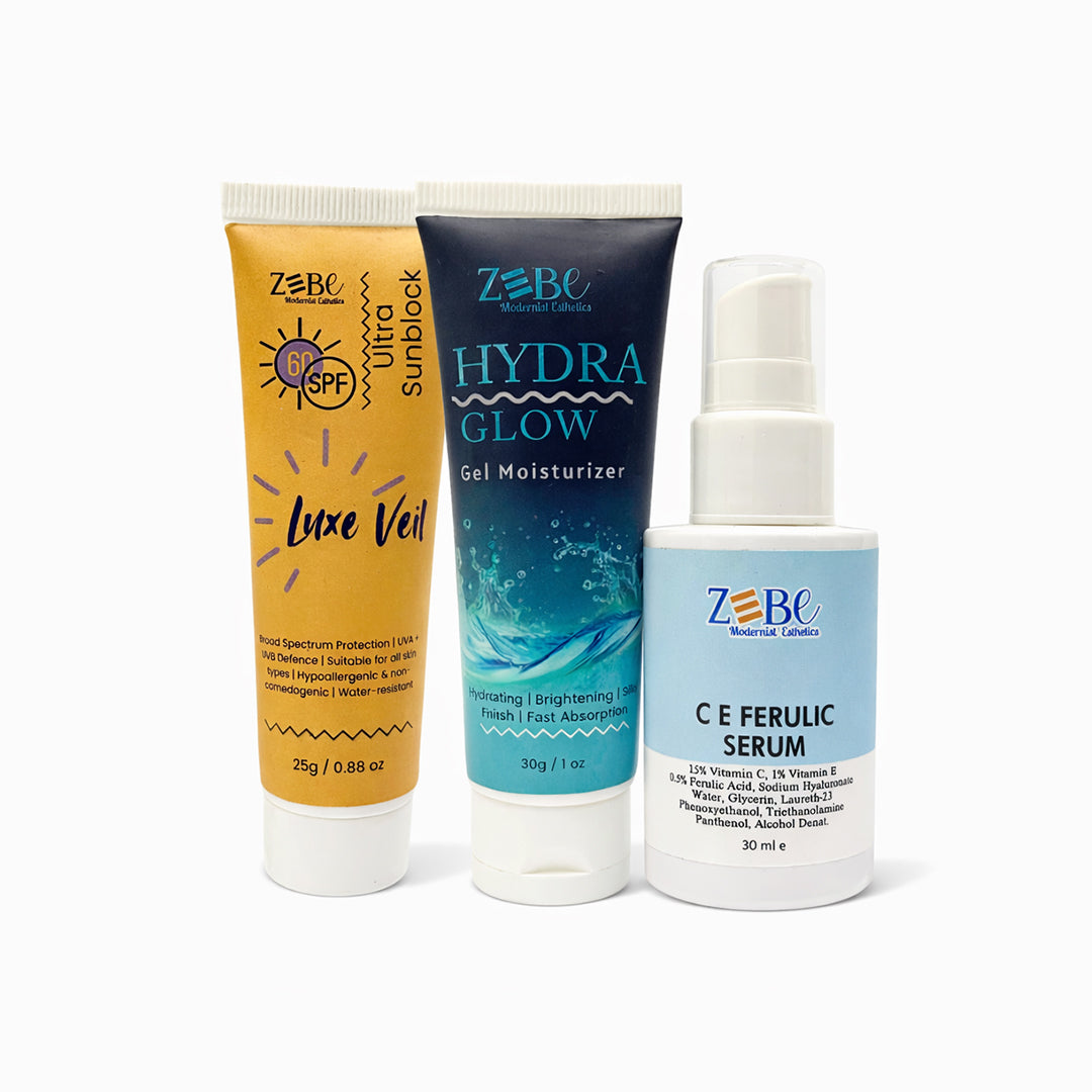 Introducing the Glow Shield Trio — a complete morning skincare system designed to brighten your complexion, deeply hydrate your skin, and protect it from sun damage and environmental stress.